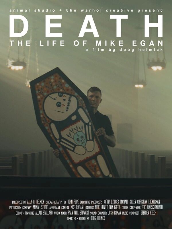 The theme of death is so prevalent in Egan's art. It symbolizes the transformative nature of change, where a part of ourselves dies to make way for something new. Throughout the doc, Egan is painting a custom built coffin. with every brushstroke, he reveals his deepest memories. The images on the coffin serve as a visual representation of his journey, capturing pivotal moments, emotions, and experiences from his life.