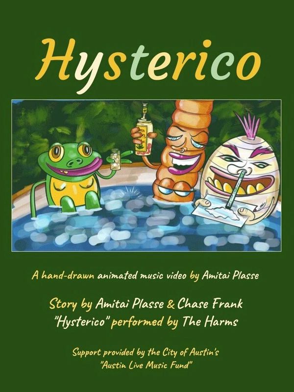 Austin animation hero Amitai Plasse brings The Harms' song, "Hysterico", to life with a modern take on an old fable, "The Scorpion and the Frog". In this frog tale, Pickles likes to have a good time, but doesn't always think about what he's getting himself into. A Jacuzzi? Nope, he's the protein for tonight's soup, just another frog in a pot. A swarm of delicious flies? Nope, he's hit by a truck (in true 8-bit style) before he can feast.
